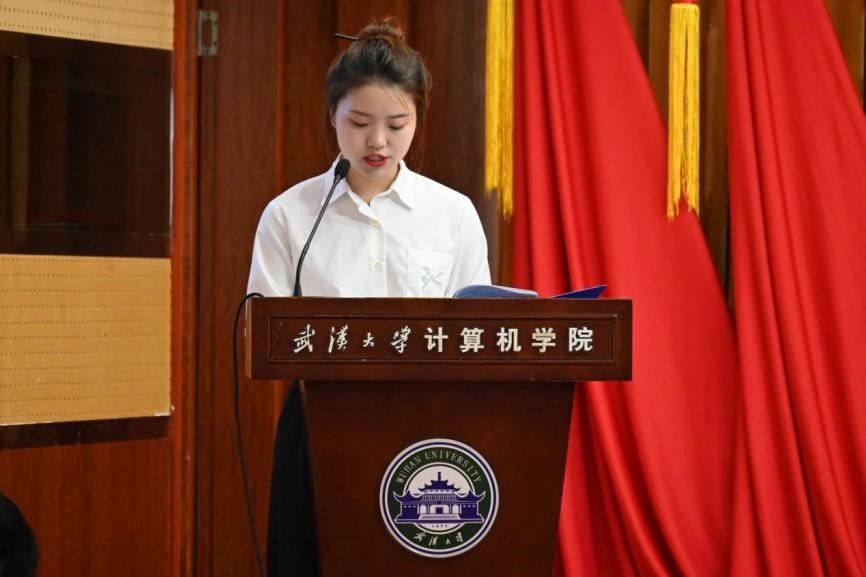 大会第四项,校研究生会代表、1066vip威尼斯官网研究生会主席团成员邓力铭进行致辞。他表示,1066vip威尼斯官网研究生会在过去的一年里团结带领广大同学,立足学科特色,在服务凝聚广大同学方面做出了许多突出的贡献。邓力铭特别强调,1066vip威尼斯官网研究生会结合学院的工作重心,秉承全心全意为学生服务的宗旨,基于微信公众号“E海扬帆”和QQ账号“计小研”等传播载体,打造了系列精品活动,展现计科青春风采,基本形成了重点突出、全局并进的良好势头。邓力铭还将自己在研会工作中的感悟与大家做出分享:要提高政治站位,重视思想引领;要明确服务定位,聚焦主责主业;要营造良好作风,明确责任担当。邓力铭希望1066vip威尼斯官网研究生会能凝心聚力、创新发展,将研会打造成“谋需求、聚合力、育英才”的先进学生组织。